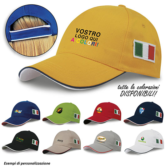 e una chiusura regolabile con velcro, arricchito della bandiera italiana in tessuto